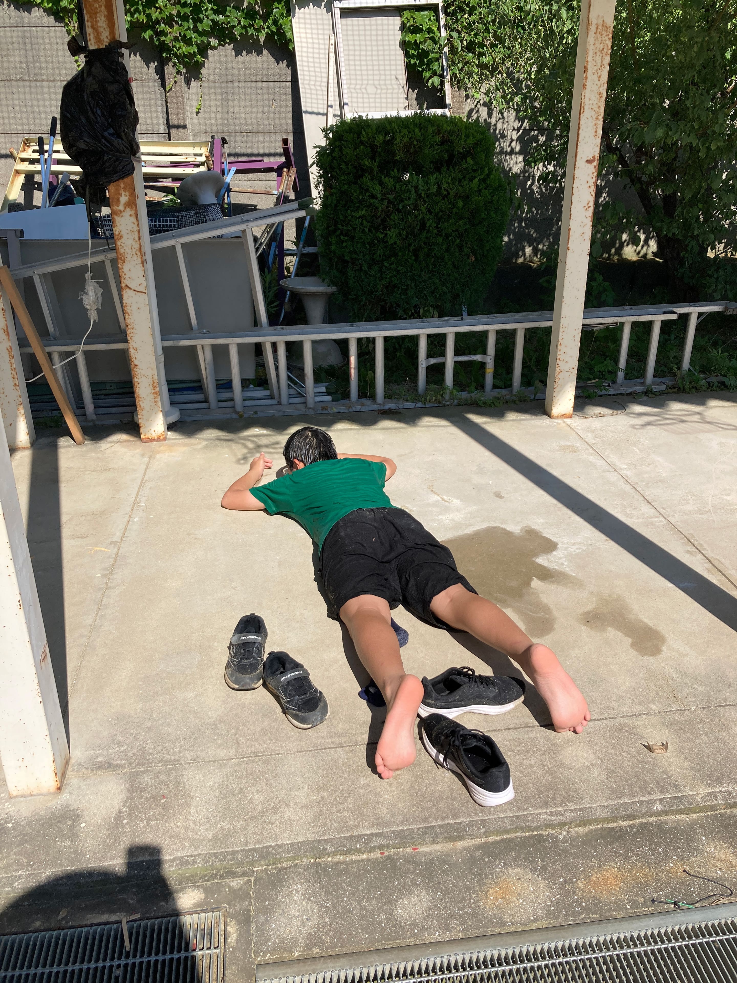 粘土質の土を乾燥させる場所の土間が足りないので、